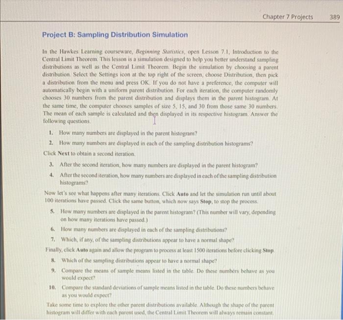 Solved Chapter 7 Projects Project B Sampling Distribution Chegg Com