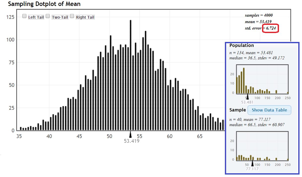 1 The sampling distribution mean of the proportion 2 The standard error of the proportion 3 25P t 0. Sampling Distribution - Example 1. In this study participants selected 120 samples of size 3 from a population of 5 scores 0003 and.