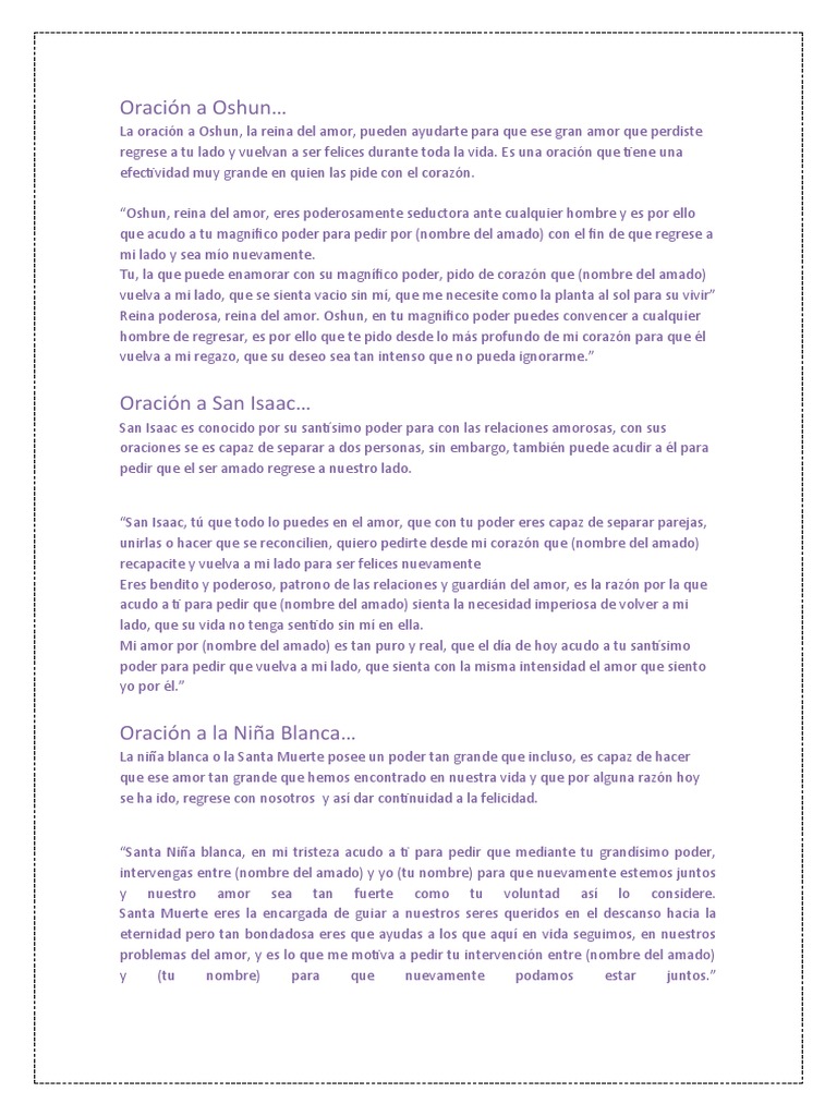 . Oshun en tu magnifico poder puedes convencer a cualquier hombre de regresar es por ello que te pido desde lo más profundo de mi corazón para que él vuelva a mi regazo que su deseo. Oración Fuerte Para Amarrar a Alguien si no se ama a la persona es mejor no hacerlo porque es para siempre. Antes de comenzar el ritual debes tener en.