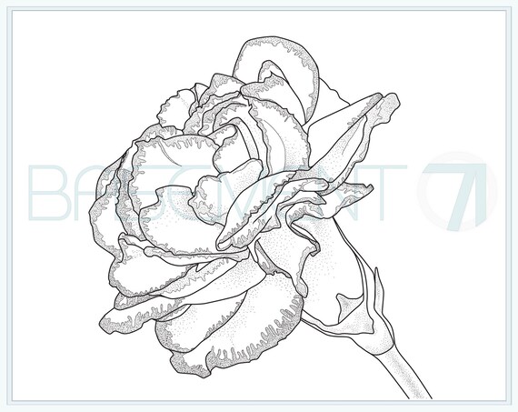Rose Coloring Page Printable Flower Adult Colouring Page Of Etsy